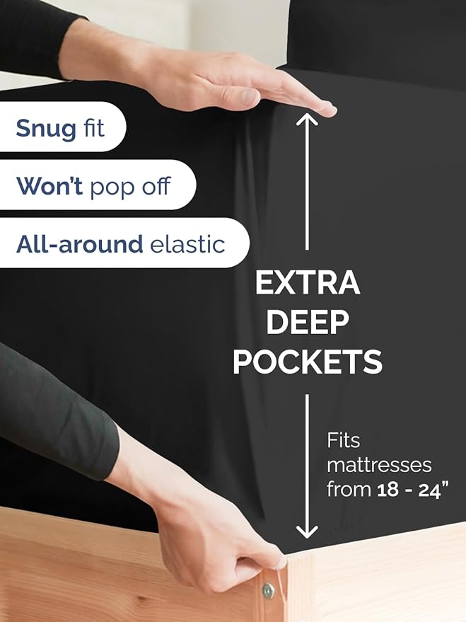 Extra deep pockets: Fits mattresses 18–24 inches deep, perfect for pillow tops, memory foam, or thick mattress pads