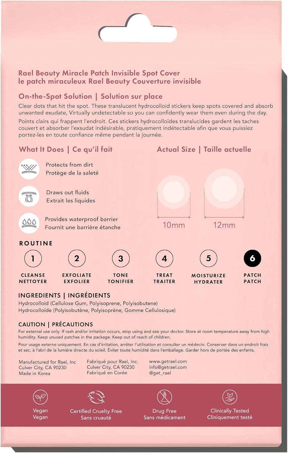 Rael Miracle Invisible Spot Cover is a trusted Korean skincare solution designed to protect, soothe, and heal blemishes without drawing attention. Made with medical-grade hydrocolloid, these ultra-thin patches absorb excess oil and impurities while creating a protective barrier over the skin. The rael miracle invisible spot cover works gently and effectively on all skin types.